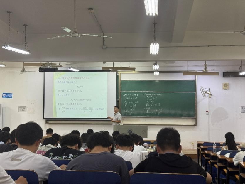 胡中华老师讲解了带电粒子在磁场中的运动及霍耳效应,并介绍了发现量子反常霍尔效应的薛其坤院士的研究工作。胡老师通过物理学史与前沿科学发现的结合,拓展了学生的科学视野。