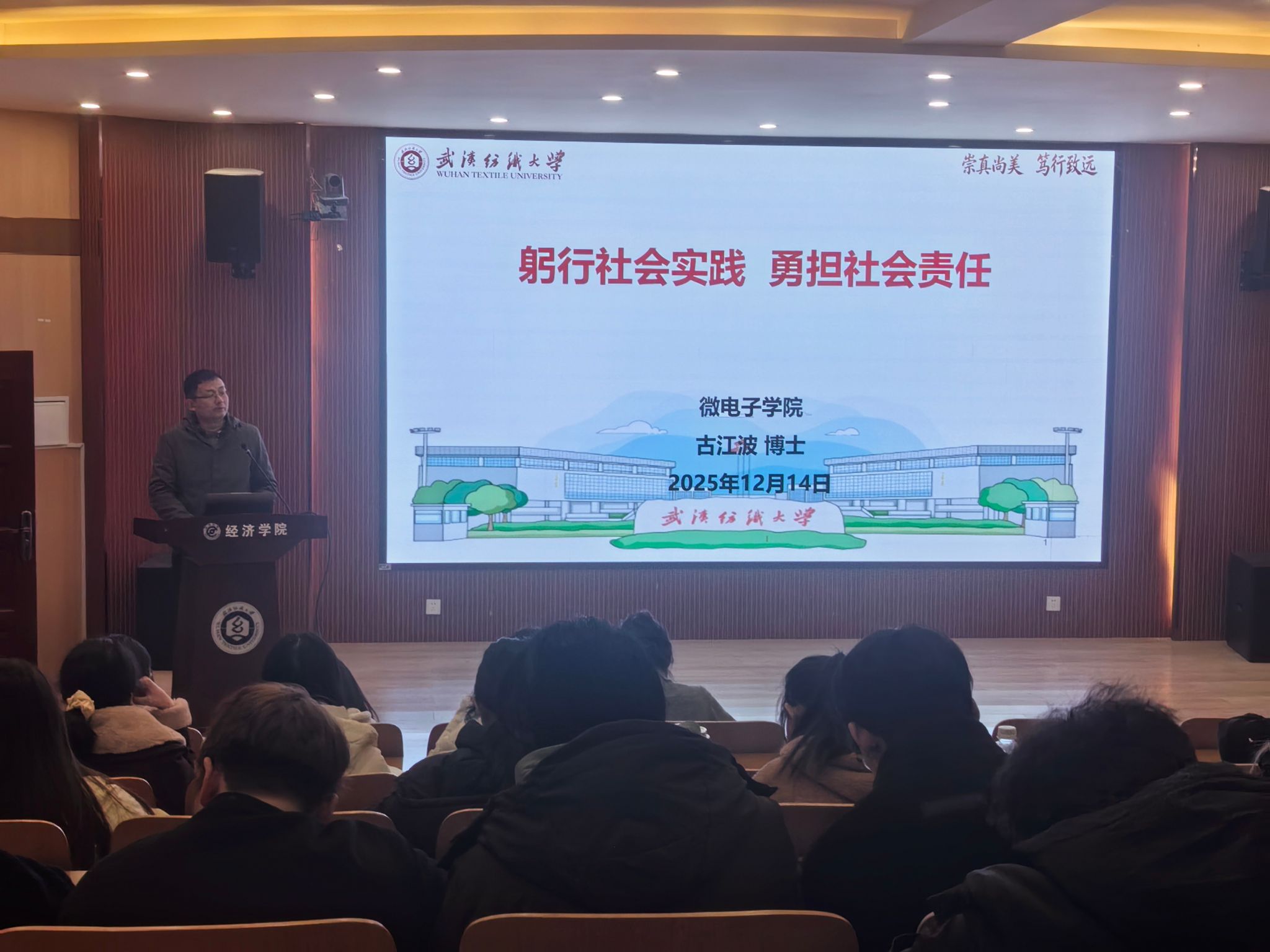 为持续深化青年思想引领,强化社会责任教育,引导入党积极分子和青年大学生在社会实践中培植社会责任担当精神,12月14日晚,微电子学院与经济学院2025年秋季联合分党校(团校)第五讲在崇德楼T301报告厅举行。本次讲座由微电子学院党总支副书记古江波博士主讲,主题为《躬行社会实践 勇担社会责任》。