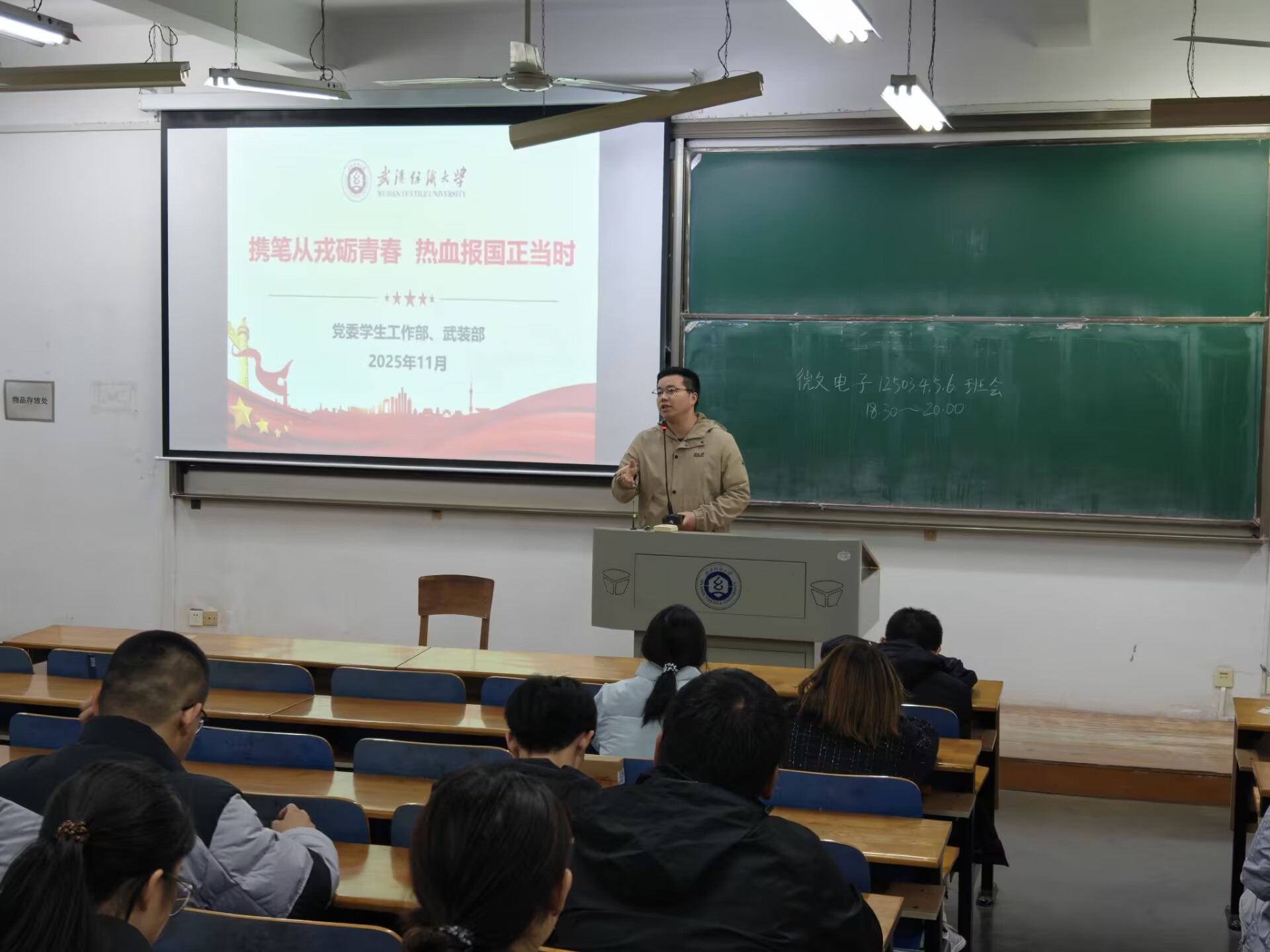 11月23日,学院在崇志楼各晚点名教室开展“携笔从戎砺青春 热血报国正当时”主题班会,围绕2026年征兵工作相关政策、流程及要求,面向各年级学生开展专项宣传动员,引导青年学子响应国家号召,以青春之力投身国防事业。