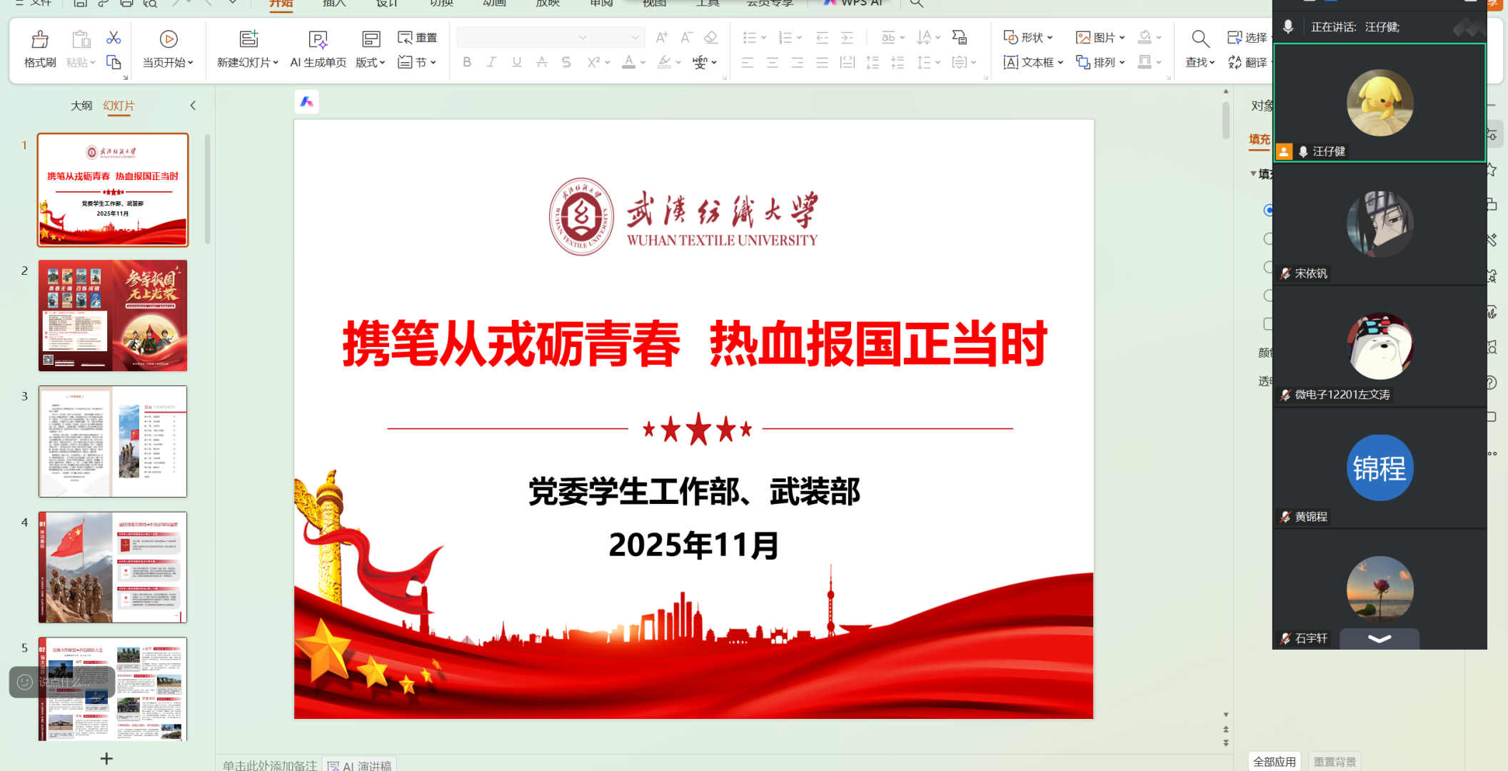 此次主题班会不仅让学生全面了解征兵政策与国防知识,更激发了青年学子的爱国热情与责任担当。下一步,学院将持续畅通征兵咨询渠道,做好后续跟踪服务,鼓励更多优秀青年携笔从戎,在军营中锤炼品格、成就梦想,为强军伟业贡献青春力量。