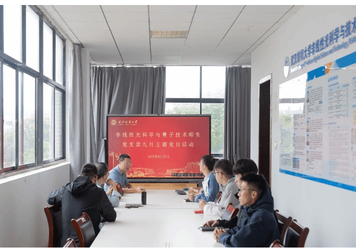 非线性光科学与量子师生党支部于9月25日召开9月政治理论学习暨主题党日活动,专题学习研讨习近平总书记近期重要讲话和指示批示精神。学习会上,钟毓同志领学,重点解读了习近平总书记在纪念中国人民抗日战争暨世界反法西斯战争胜利80周年大会上的重要讲话精神及关于落实中央八项规定精神的重要指示。通过学习,全体党员深刻认识到弘扬伟大抗战精神的时代意义和作风建设常态化长效化的重要性。交流研讨中,大家踊跃发言,紧密结合思想和工作实际谈体会、讲打算,一致表示要将抗战精神内化为强大动力,以更饱满的热情和更务实的作风投身支部建设,并自觉遵守纪律规矩。支部书记周勤同志总结强调,全体党员要以此为新起点,持续深化理论学习,自觉做党的创新理论的信仰者和实践者,将学习成果转化为推动支部高质量发展的实际成效。
