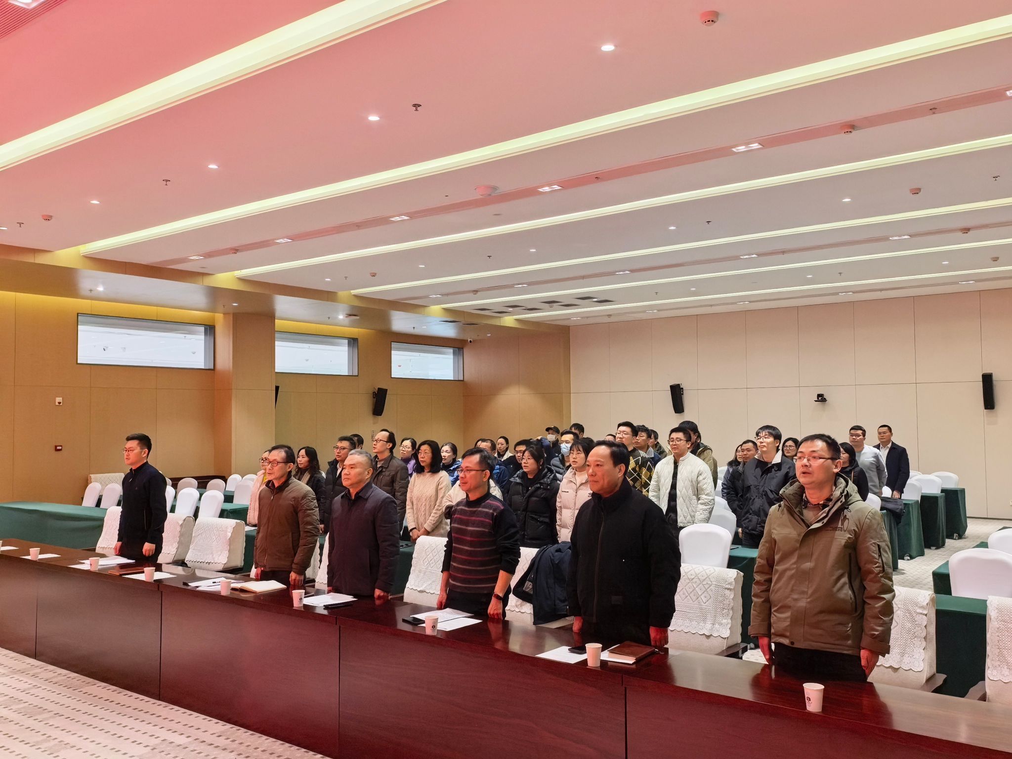 大会在雄壮的国歌声中开幕。全体与会人员庄严肃立,高唱国歌。
