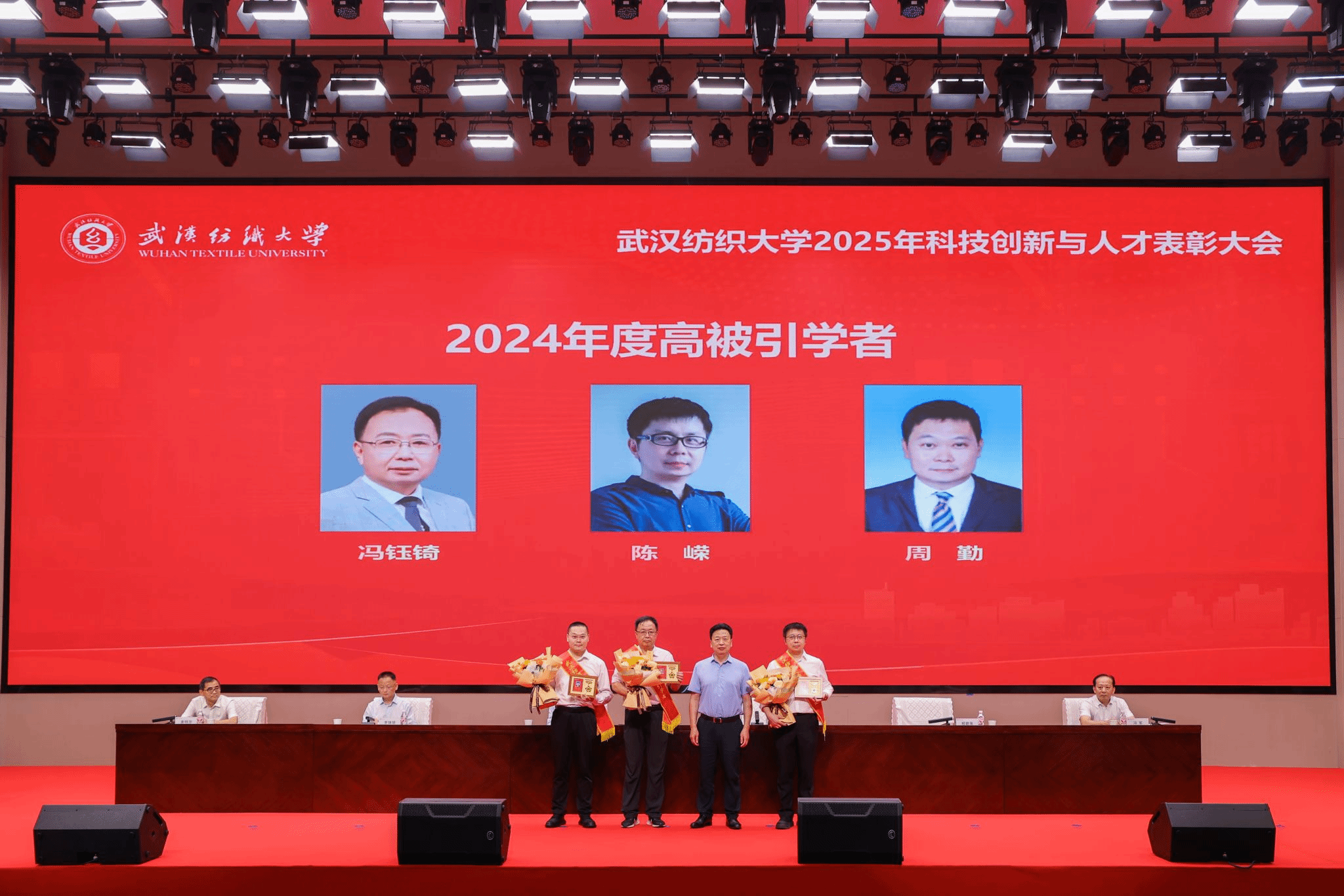 2025年6月,周勤(前排左一)在全校科技创新与人才表彰大会上接受表彰