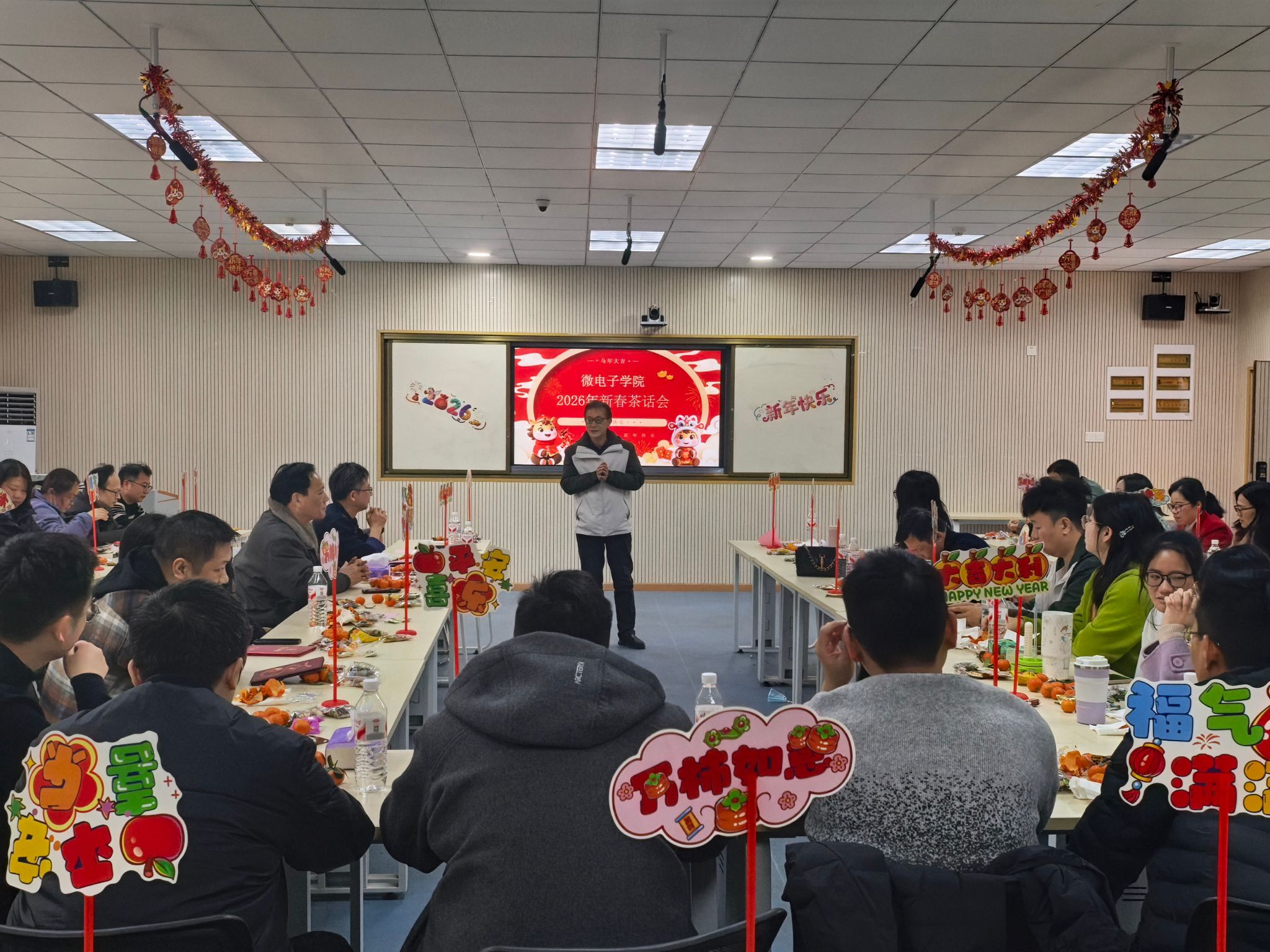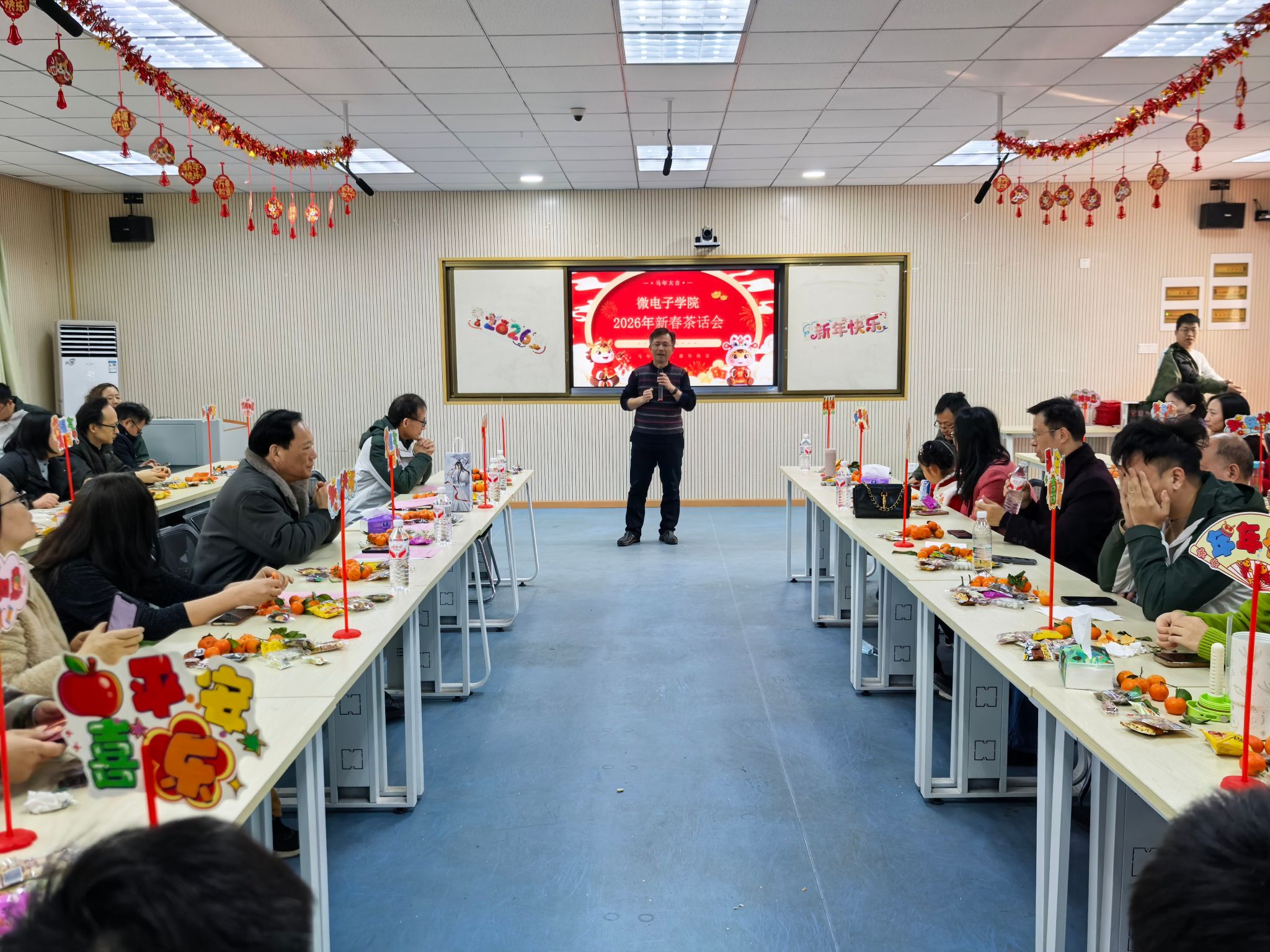 2026年1月17日上午,微电子学院在阳光校区崇文楼205会议室隆重举行2025年度教职工表彰大会暨2026年新春茶话会。学院领导班子和全院教职工欢聚一堂,共话收获、共迎新春。