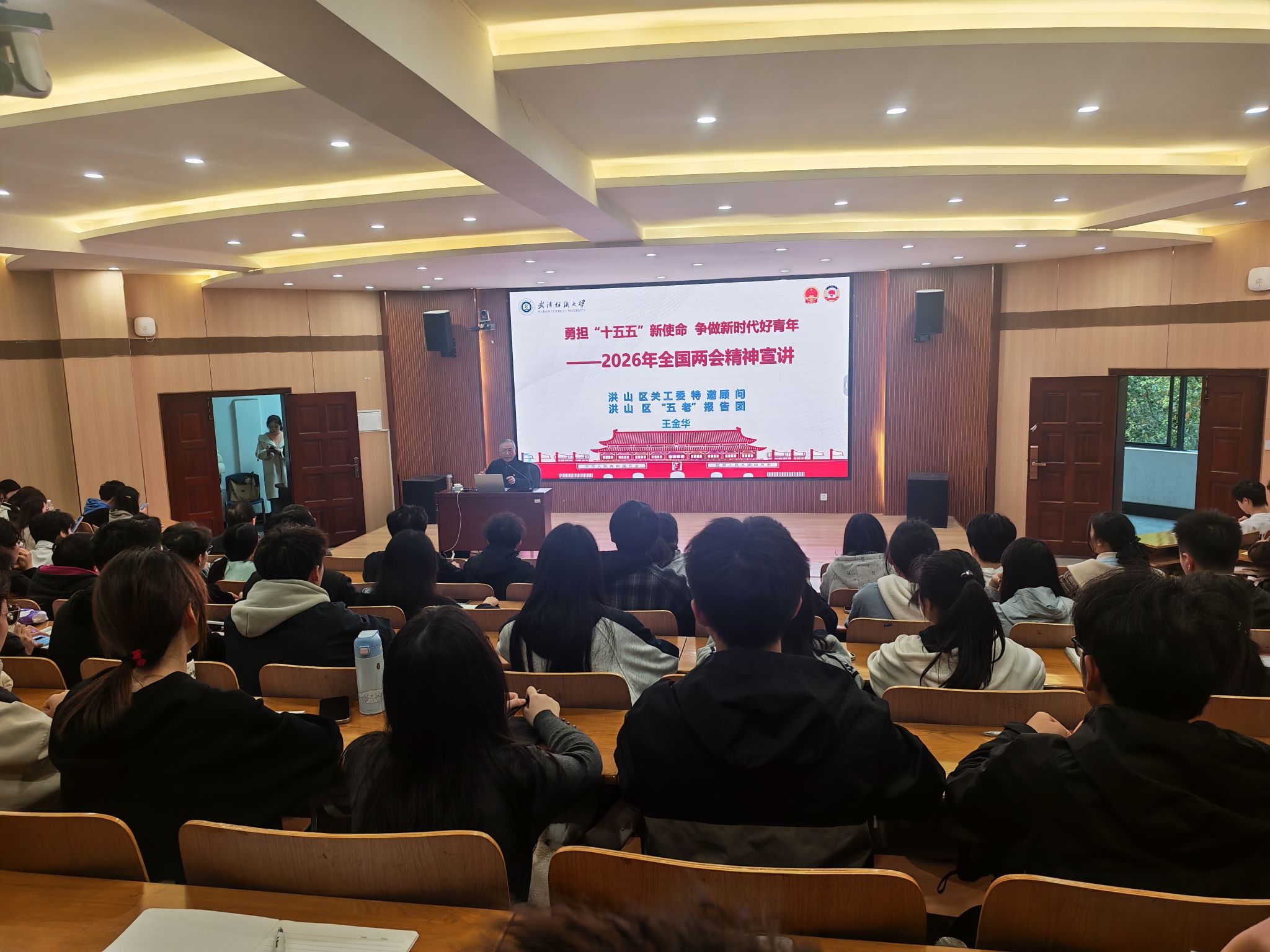 为引导青年学子坚定理想信念、勇担时代使命,精准把握国家发展战略方向,3月26日,武汉市关工委“跟党走”五老报告团副团长、洪山区关工委特邀顾问、洪山区五老报告团副团长、武汉纺织大学关工委常务副主任王金华教授受邀出席武汉纺织大学微电子学院、经济学院2026年春季入党(入团)积极分子培训班开班式,并为近300名积极分子宣讲全国两会精神。微电子学院、经济学院党委书记、副书记、辅导员参加了报告会。