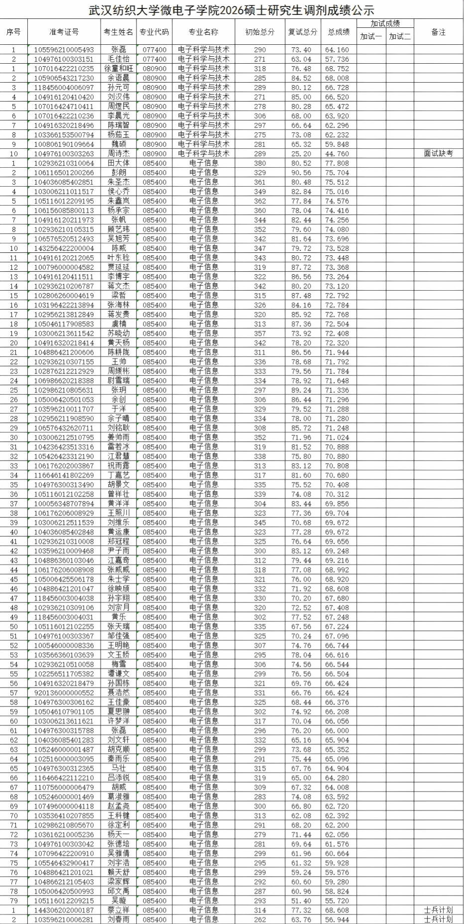 武汉纺织大学微电子学院2026年硕士研究生调剂成绩公告
