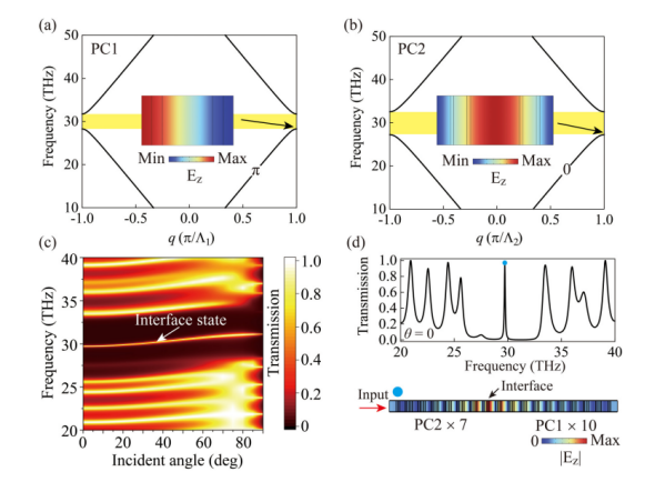 王贝贝:本次组会主要汇报在角不敏感光子晶体滤波器方面的研究成果。设计两种具有不同拓扑特性的一维角度不敏感光子晶体异质结构,将两种一维光子晶体结构耦合形成一维混合光子晶体结构,在其界面处可观察到拓扑界面态,并且该界态也具备角度不敏感特性。通过精确调控拓扑界面态的耦合,可以实现了角度不敏感的光传输。之后,在其中一种光子晶体结构中引入相变材料Sb2S3,利用其相变特性,通过改变折射率来保证在不同入射角下的传输峰保持稳定且无频移。然后,在上述设计的一维光子晶体结构基础上,还设计了另一种混合光子晶体异质结构,该结构包含两种界面模式:拓扑界面态和塔姆等离子激元。当这两种模式的耦合作用增强时,会出现两个明显的共振峰;逐渐减弱耦合作用,则会使这两个峰合并为一个单一峰。该结构实现了角度不敏感的光吸收。