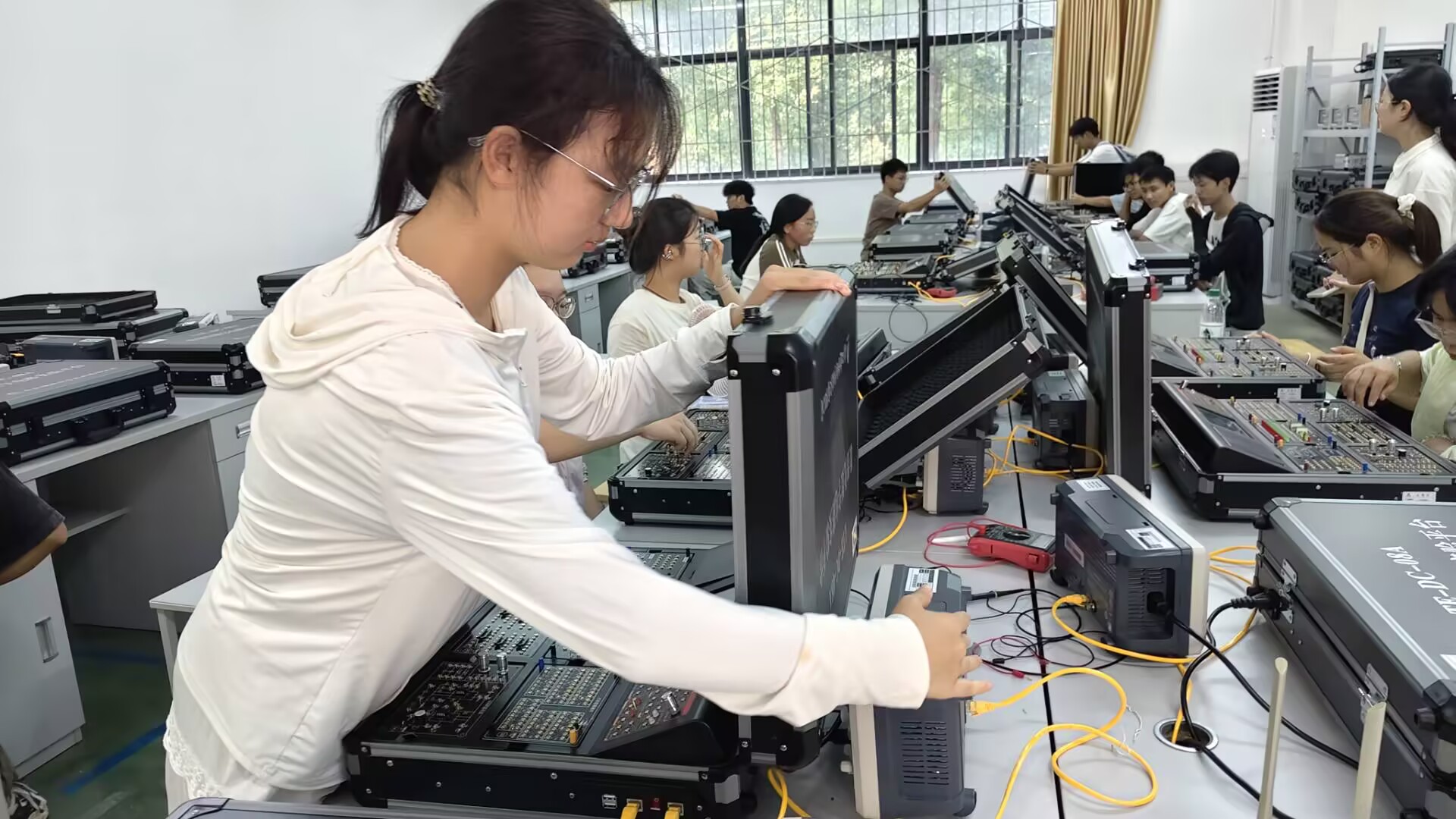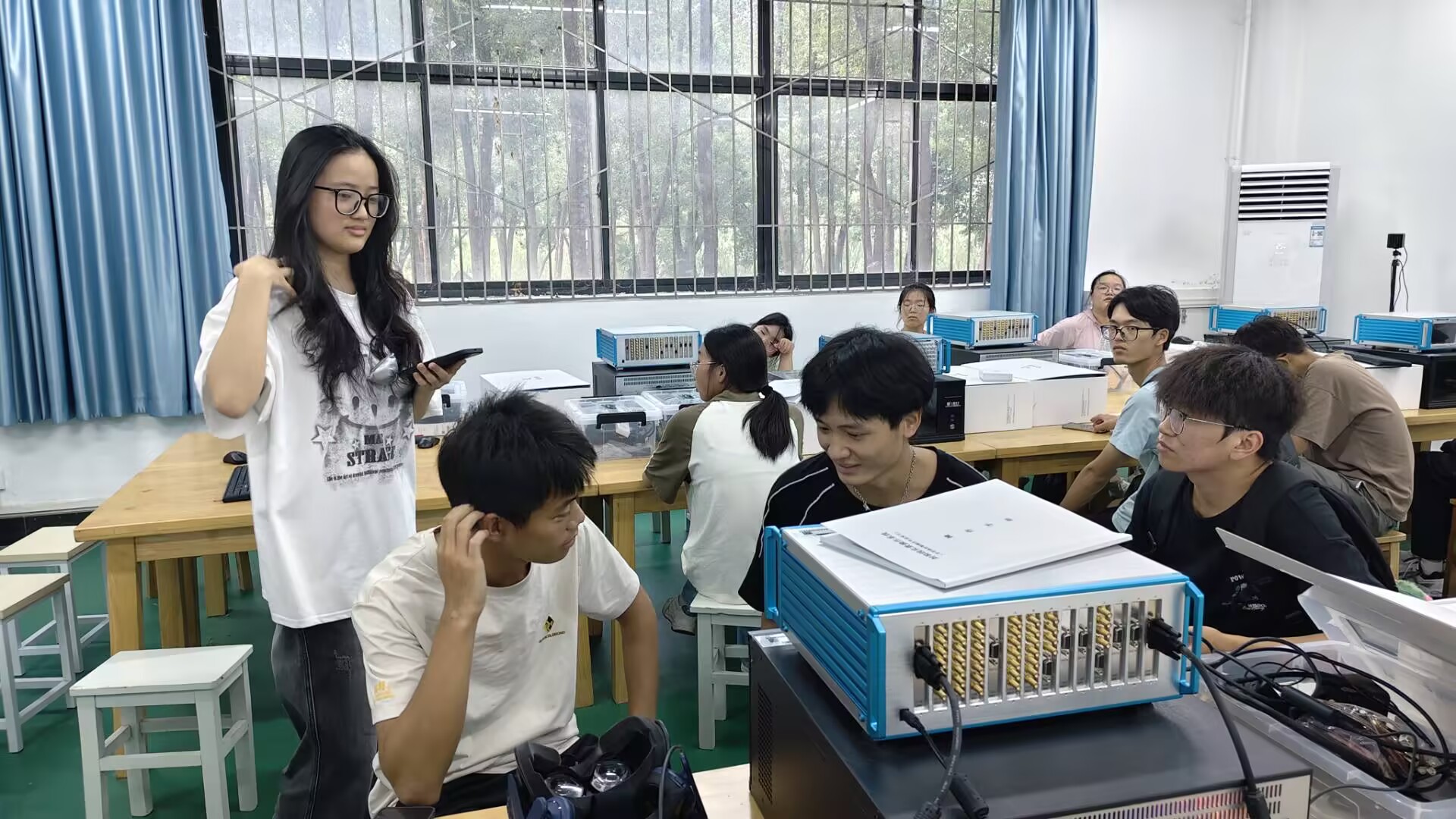 在湖北省大学物理实验教学示范中心,同学们了解到该中心作为省级示范平台,拥有先进的实验设备和丰硕的教学成果,其支撑的《大学物理》课程获评国家级一流课程。中心培养的学生在“挑战杯”、中国国际大学生创新大赛等多项顶级赛事中屡获国家级奖项,充分展现了学院卓越的创新人才培养能力。
