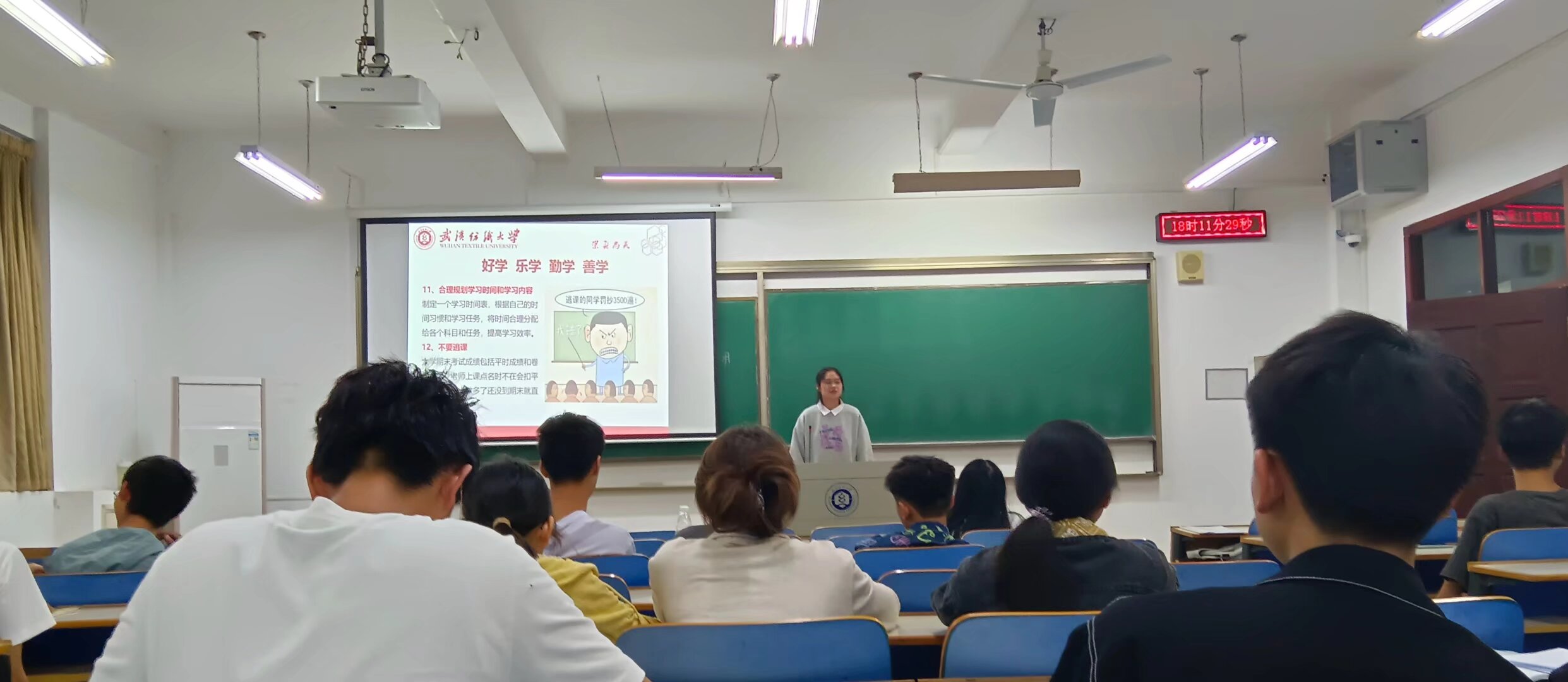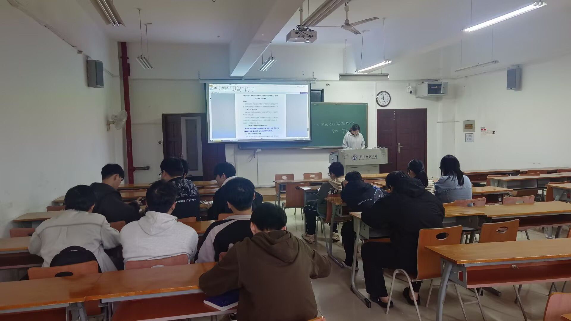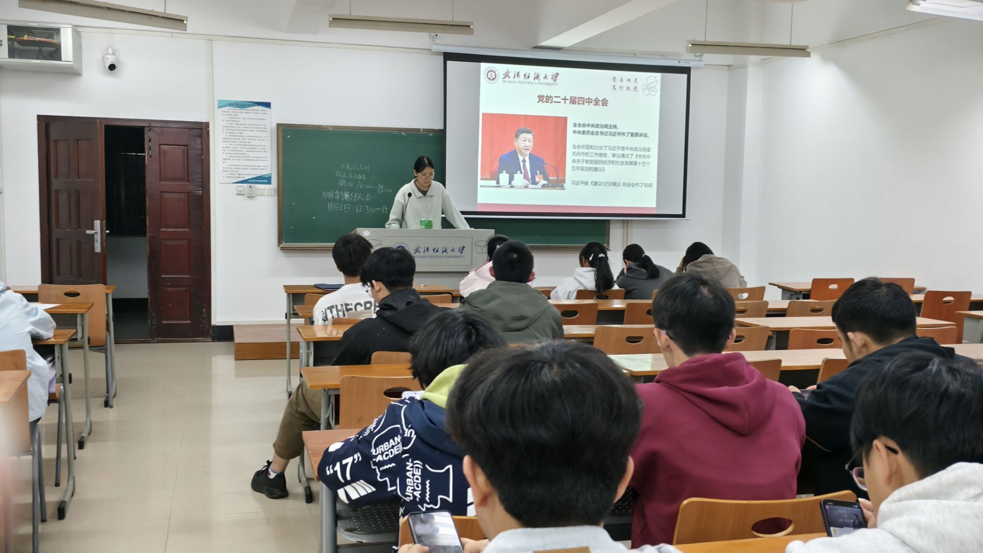 2023和2022级各班班主任们在第九周晚班会教育中,深入开展“学习贯彻二十届四中全会精神”主题班会,他们带领学生系统学习全会关键内容,重点解读“十五五”时期国家发展的目标任务与战略布局,通过结合青年学生成长实际的讲解,引导大家深刻理解新时代国家发展方略的内涵,进一步强化青年学子的时代责任感与使命担当。随后针对学校发布的两类重要资助评选通知——《2024-2025 学年本科生攀登奖学金评选工作的通知》与《关于开展2024-2025学年武汉纺织大学“先进班级”、“先进个人”评选工作的通知》,开展专项政策宣讲。最后结合持续推进的爱国卫生运动要求,再次强调宿舍清洁卫生的重要性,教育引导学生养成良好生活习惯,共同营造整洁、文明、和谐的宿舍生活环境。