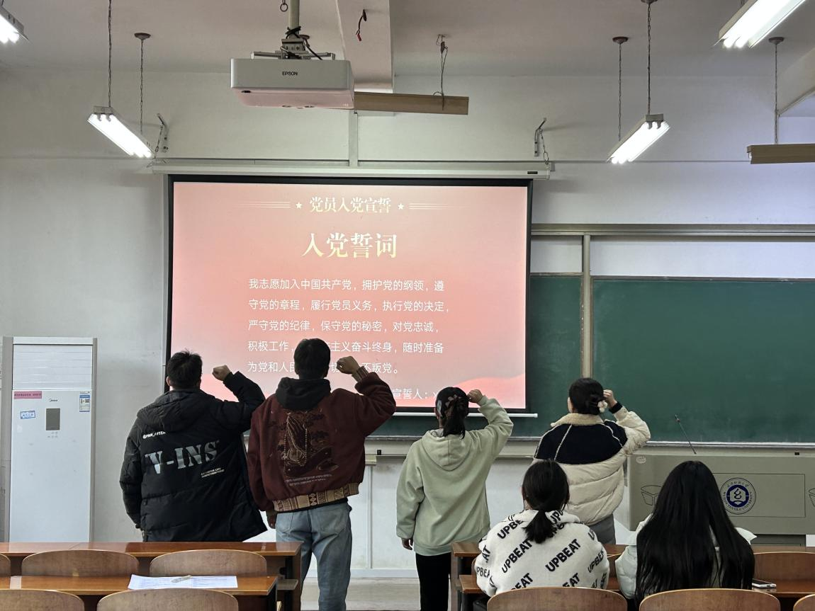 会上,彭朗、夏煜菁、张高闯、严吉菲四位预备党员郑重向党组织汇报自己在预备期间的思想动态、学习情况、工作表现以及存在的不足与改进方向,表达入党决心。随后,入党介绍人分别对四位预备党员的预备期表现进行了详细介绍和客观评价,既肯定了他们的成长与进步,也提出了希望与建议。支部党员讨论并以无记名投票表决,一致同意四人按期转正。全体参会人员起立奏唱《义勇军进行曲》后,新转正党员面向党旗庄严宣誓,其他党员同志一同重温入党誓词。转正大会结束后,主题党日学习聚焦《习近平谈治国理政》第五卷,支部书记卫周瑶结合微电子学院特色,解读中国式现代化、全面深化改革等重要论述,强调青年党员要肩负科技创新使命。党员们积极交流心得,表态将学以致用。