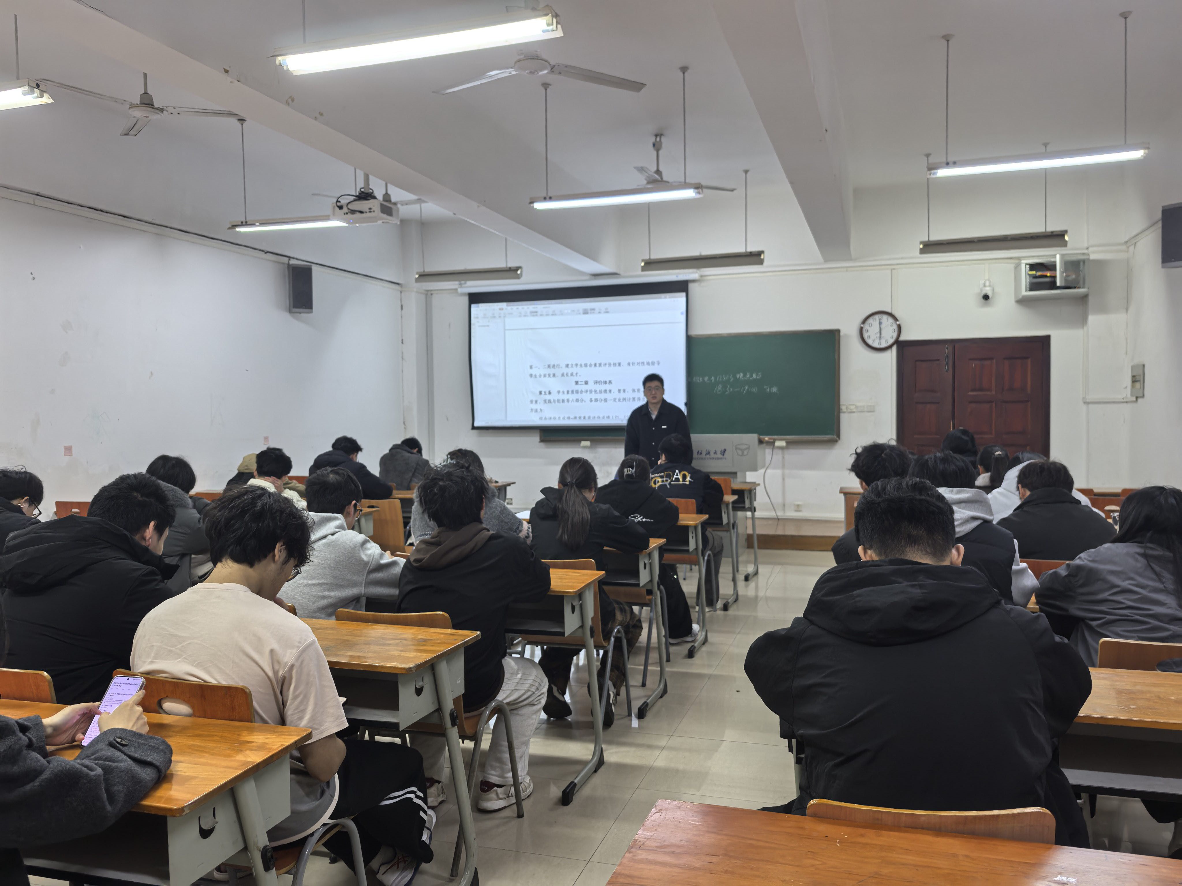 2024级班会聚焦思想深化与综合发展。 各班在重温“国旗与国旗的对话”思政课内容的基础上,引导学生深刻理解国旗承载的国家主权与民族尊严,将个人理想融入国家发展战略。心理健康教育针对大二学生面临的学业压力与成长困惑,重点探讨了朋辈对比引发的焦虑内耗问题,鼓励同学们关注自身进步节奏。辅导员结合综合素质评价工作,强调学科竞赛、社会实践、志愿服务等模块的重要性,鼓励学生积极参与科研项目和创新创业活动,在提升专业能力的同时丰富综合评价支撑材料,明确后续考研、就业等发展方向,以扎实行动锚定奋斗目标。